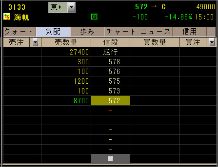 当日終値:572円(-100円/-149%)