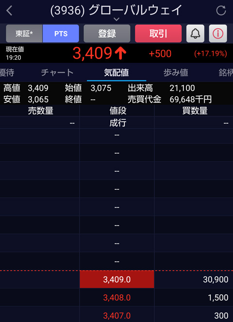 参考 GWがカイ気配スタート、11月3日を基準日として1株を3株に株式分割へ株深(かぶたん)グローバルウェイのリアルタイム株価