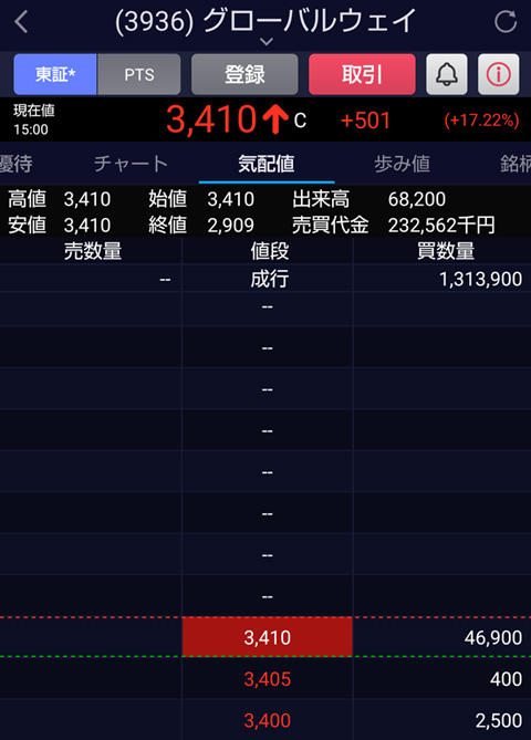 当然の如くストップ高