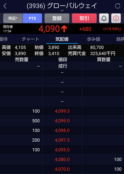 これこそまさに需給だけで上がっているグローバルウェイ。